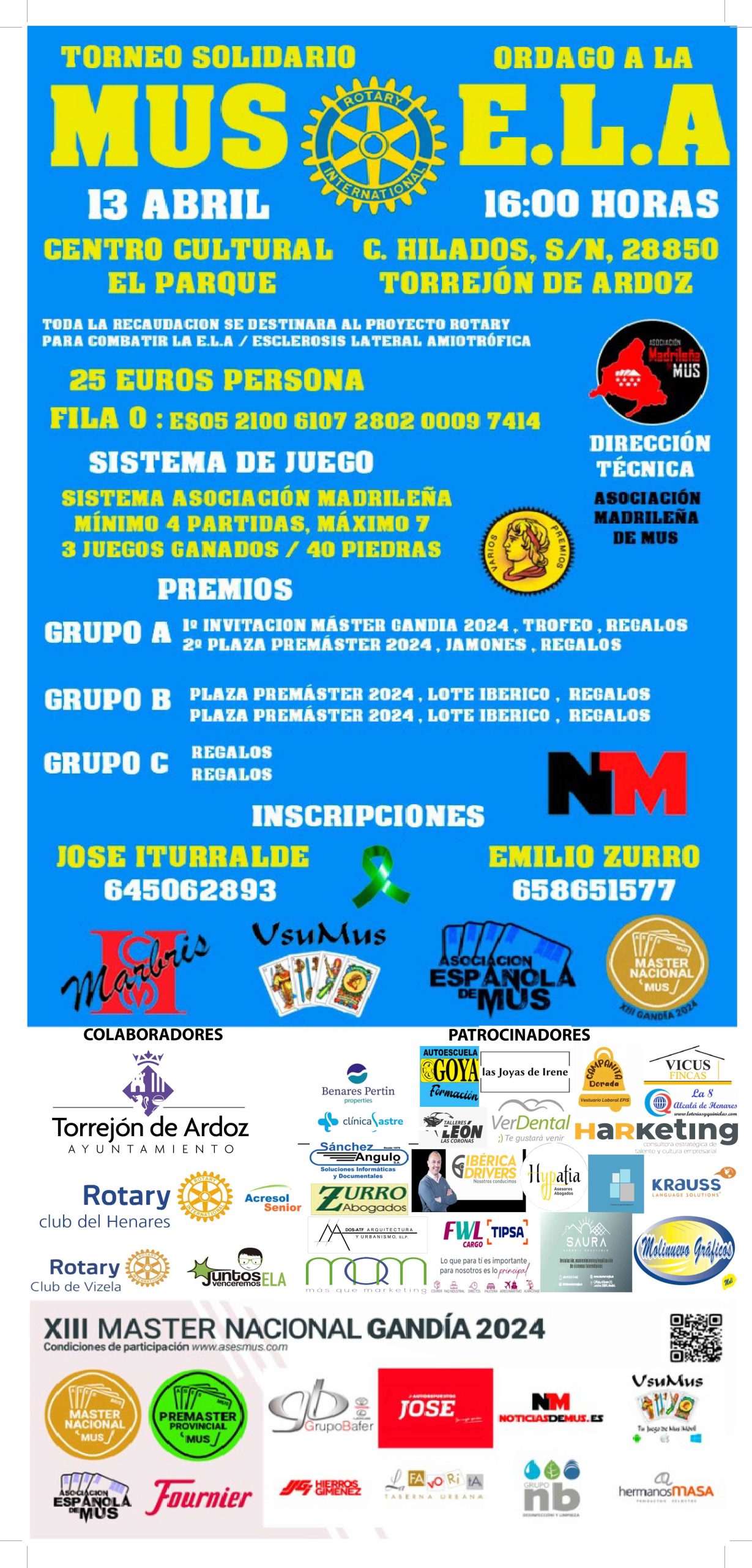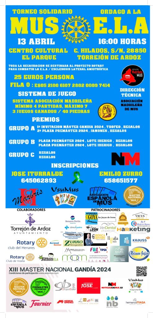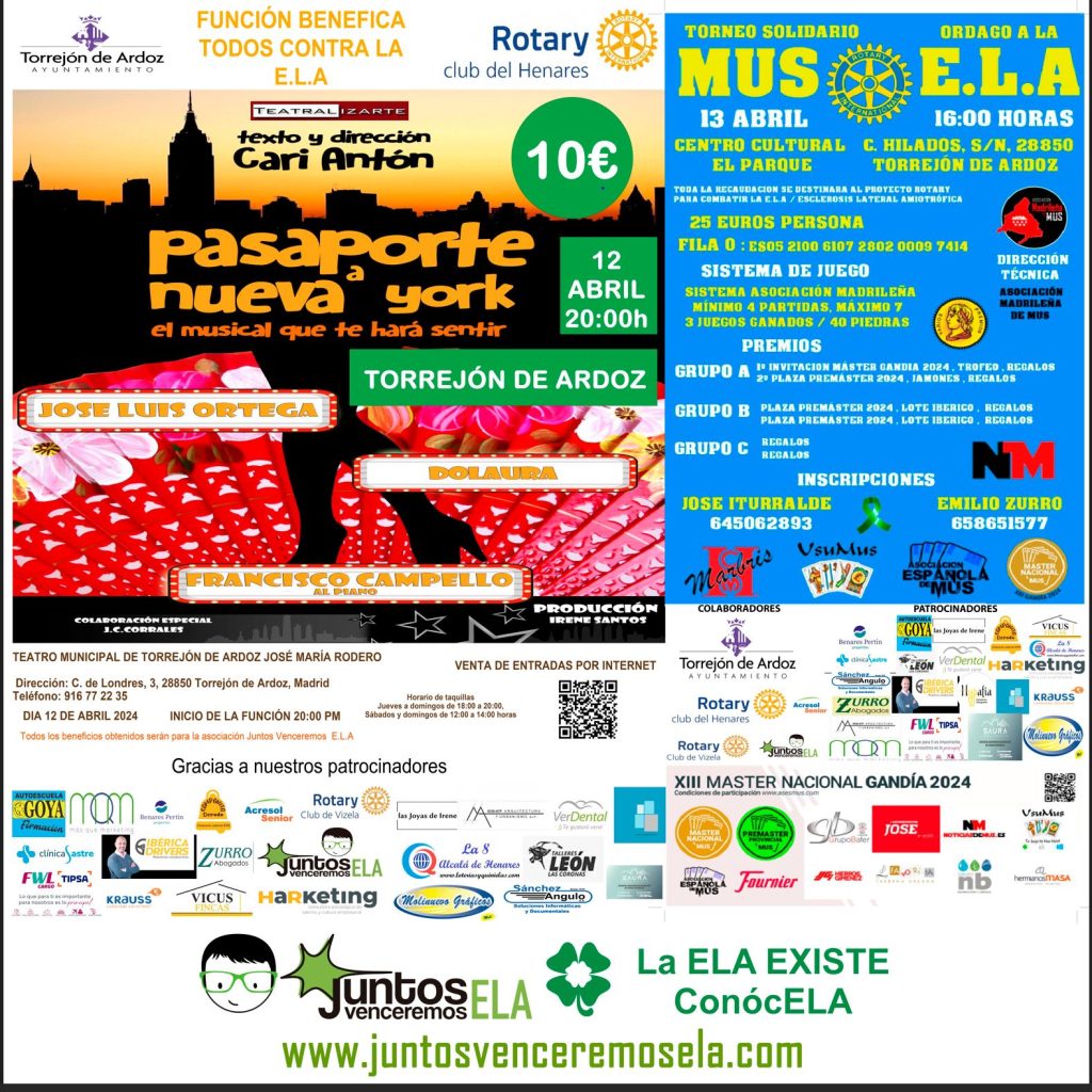 El pasado viernes y sábado, 12 y 13 de abril, se llevaron a cabo dos eventos solidarios en beneficio de nuestra causa y asociación, gracias a la colaboración del club Rotary del Henares, a través de Antonio y Guillermo, y la asociación Acresol senior, a través de mi gran amiga Trini, que llevaba mucho tiempo queriendo hacer algo por la ELA.