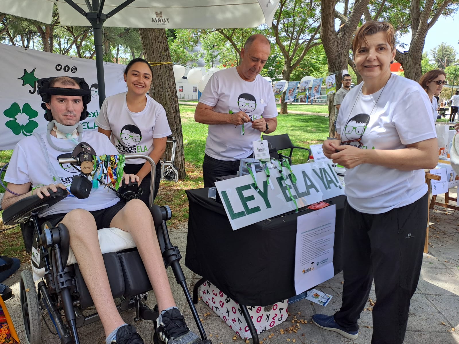 El pasado domingo, 26 de mayo, se celebró el día del barrio de ‘La Jota’ y, como el año pasado, volvimos a participar montando una mesa informativa sobre la enfermedad, la asociación y la necesidad de una ‘Ley ELA’.